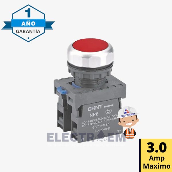 Pulsador Rasante PVC Rojo Ø22Mm 1Na+1Nc, NP8-11BN/4 El precio original era: S/30.00.El precio actual es: S/25.00.