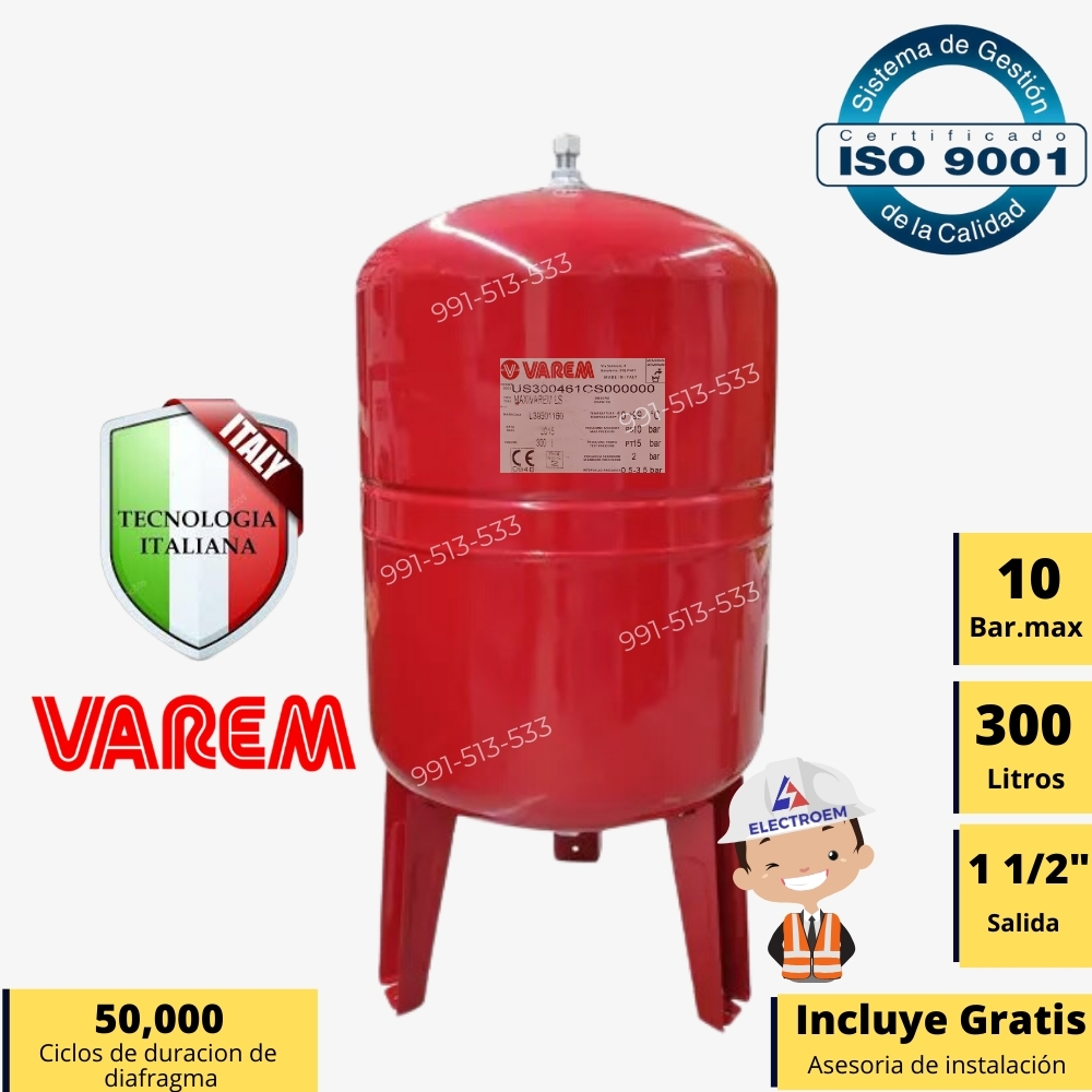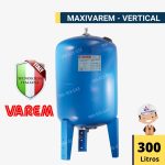 • El Maxivaren  de 300 litros es un producto de alta calidad de la reconocida marca VAREM, líder en la industria de la presurización. Este modelo, Maxivaren  de 200, cuenta con una capacidad en volumen de 300 litros, lo que lo hace ideal para una variedad de aplicaciones. Su diseño robusto y duradero se debe a su material externo de acero galvanizado, que garantiza una larga vida útil y resistencia a las condiciones más exigentes.