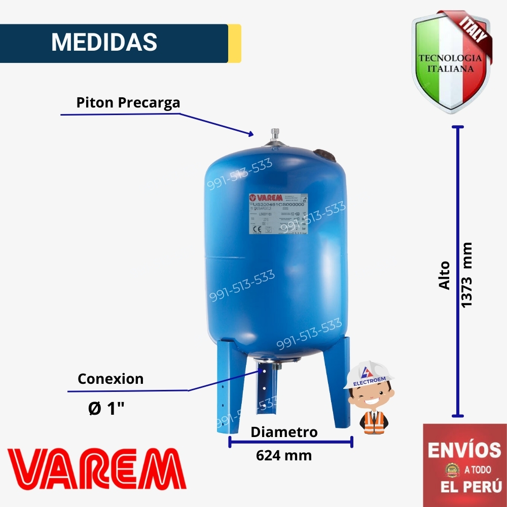 Tanque Hidroneumático VAREM 200 litros con membrana EDPM El precio original era: S/2,510.00.El precio actual es: S/2,460.00.