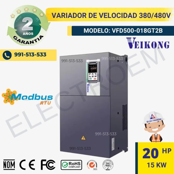 Variador de velocidad 15KW-20HP, 380-480VAC, 32Amp VEIKONG VFD500-018GT2B El precio original era: S/2,510.00.El precio actual es: S/2,490.00.